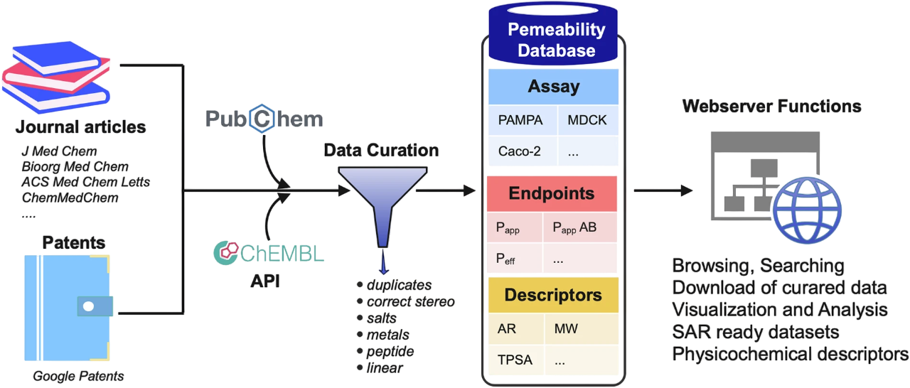 Cyclic peptides are just one chapter in the macrocycle story. NPMMPD (https://swemacrocycledb.com/), developed by Jan Kihlberg's research group at Uppsala University, Sweden, broadens the narrative to encompass the entire universe of non-peptidic macrocycles. This database represents a massive curation effort, consolidating data from 103 scientific publications and 9 patents from 2006 to 2023, plus entries from the ChEMBL repository to offer a collection of 5,638 permeability measurements across 4,612 macrocyclic molecules.